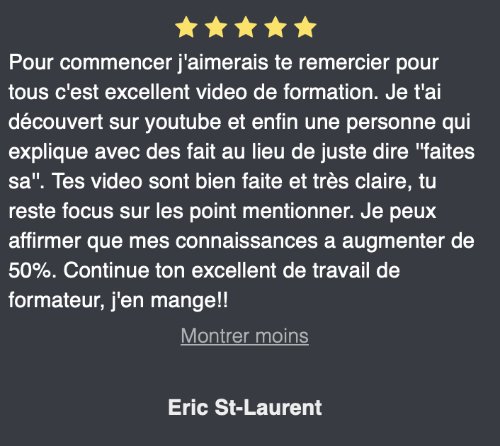 Une formation qui regroupe plus de 15 ans d'expérience. Une première sur le marché francophone.